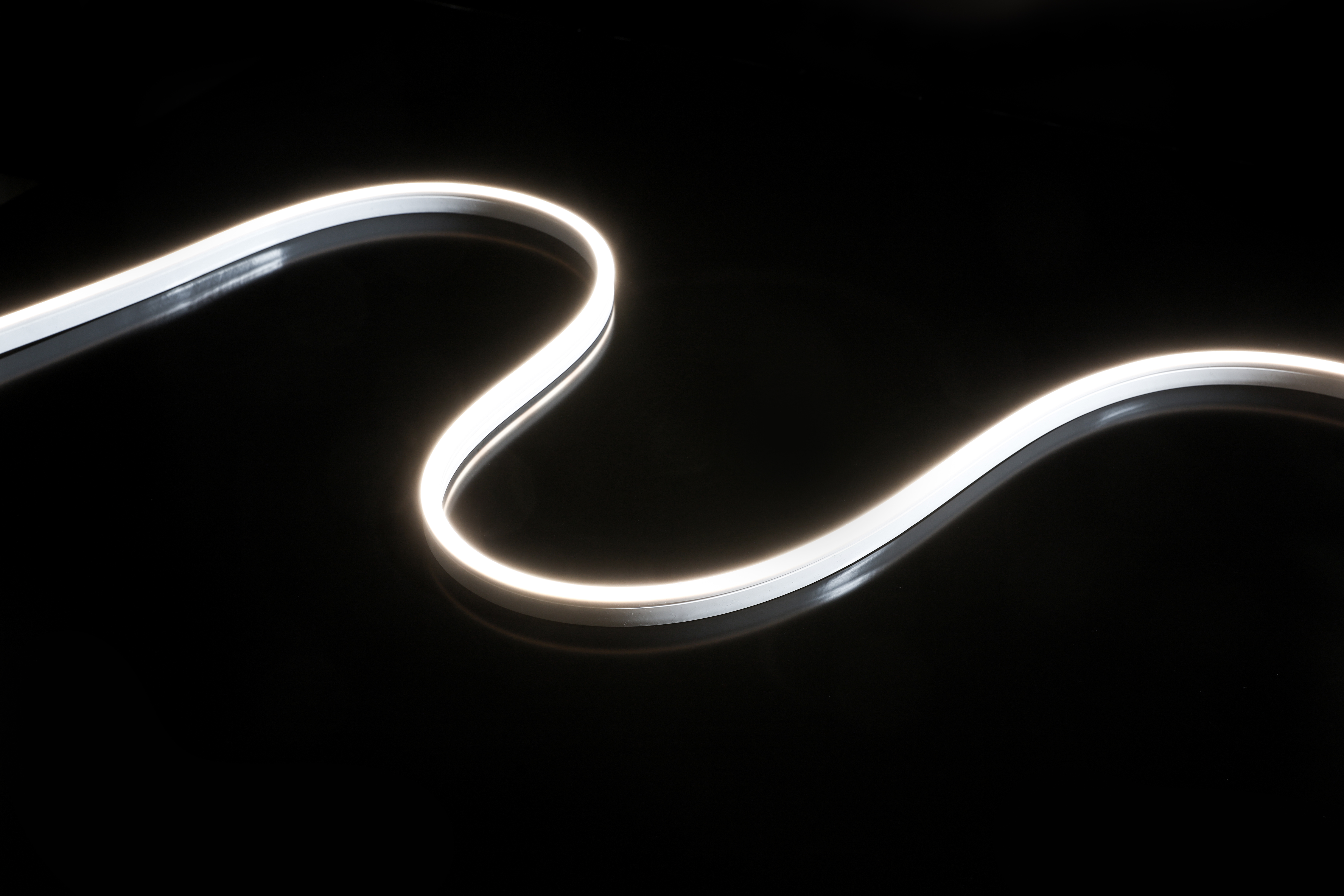 NEONFLEX 1018 TWO-TONE is a compact lighting solution (W: 10 x H: 18 mm), horizontally flexible and breakable every 50 mm, ideal for creating illuminated signs in place of high-voltage neon. Its color temperature can be adjusted from 2700K to 6000K, providing high-performance, customizable lighting. Its excellent color rendering (CRI >90), uniform light output and high-quality, IP67-certified silicone casing make it a robust product, suitable for both indoor and outdoor use. Easy to install thanks to its clips and folding profile, it comes in 5-meter spools. Anti-dust coating.