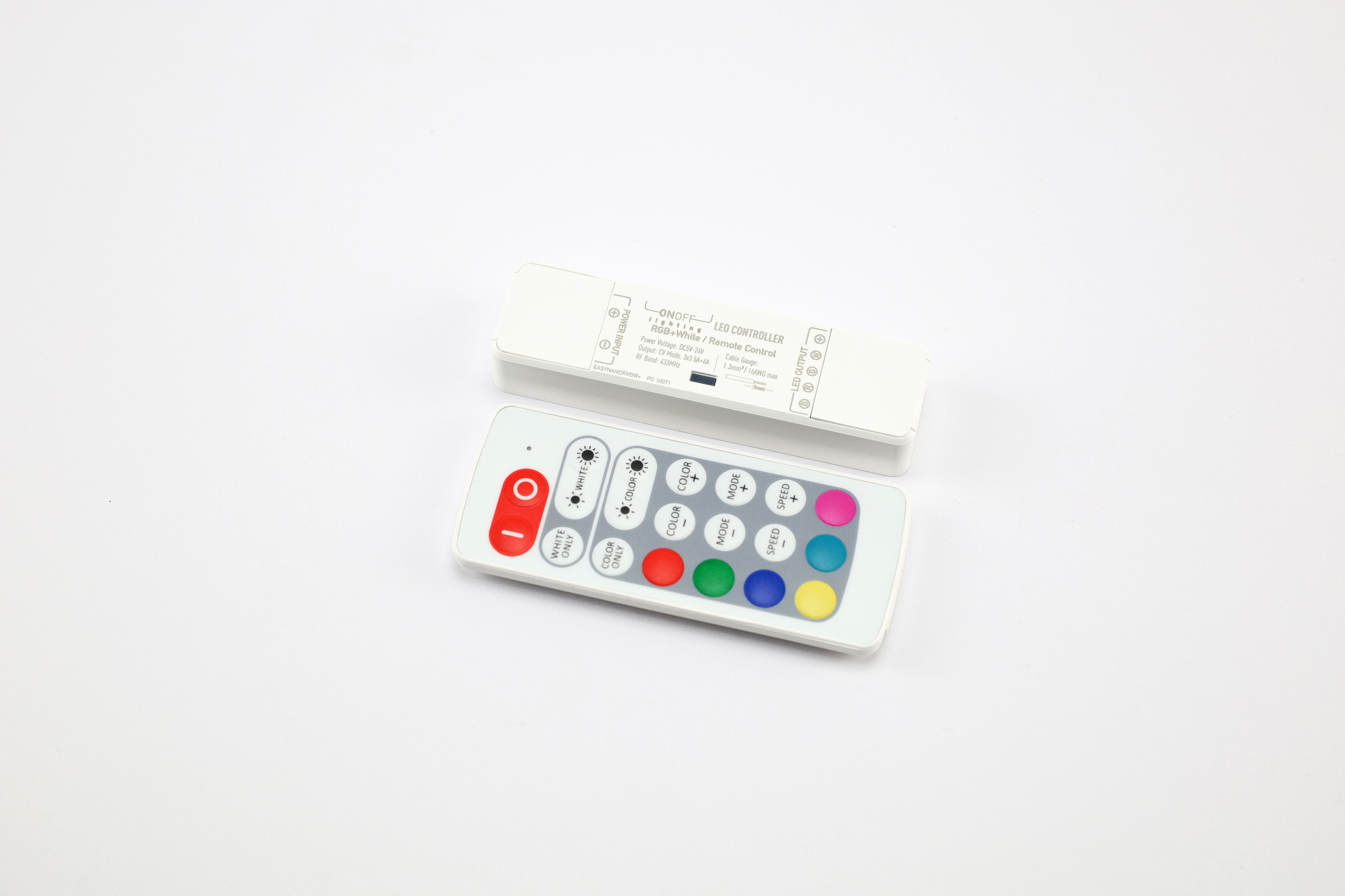 Le contrôleur EASYNANO RVBW+ permet le controle de tous les produits basse tension RVBW de 5-24 VDC. Avec sa télécommande RF (portée >15 m), il offre 34 modes dynamiques, 30 couleurs statiques, 10 niveaux de dégradé de blanc, 10 niveaux de vitesse et 6 raccourcis de couleur. Il intègre une protection contre la surcharge pour un contrôle sécurisé et précis.
